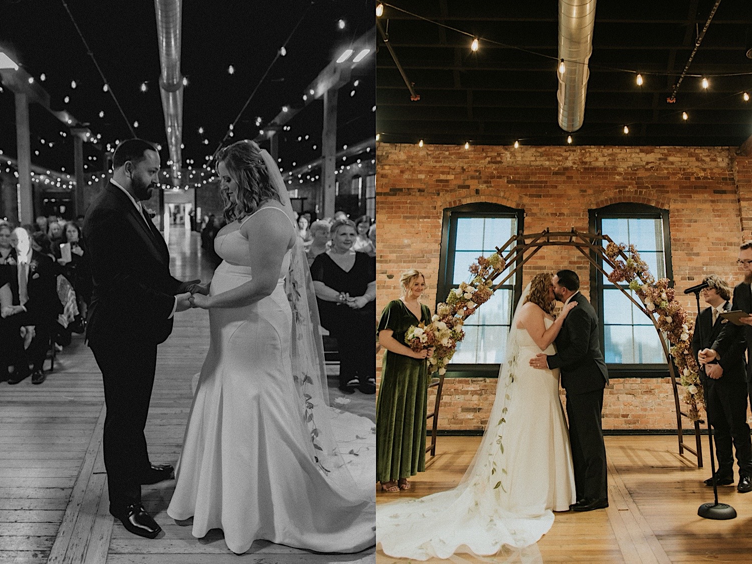 Inside, the blend of exposed brick, ornate ceilings, and vintage details lends a regal, cinematic feel. What a backdrop for your day & photos!